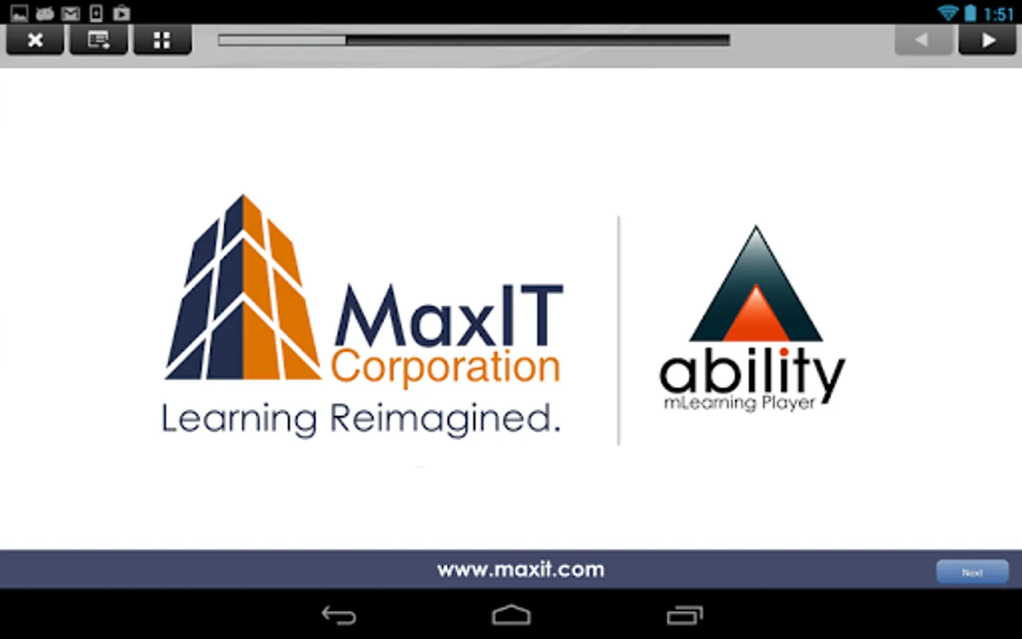 Ability mLearning Player provides organizations with an easy way to deliver training content to any user at home, at the office, or on the road. The player delivers off-line and on-line access to most HTML5 compliant training courses that conforms to SCORM 1.2 or Experience API without the need for continuous internet connectivity. Once finished with the training, the LMS automatically gets your progress the next time the player connects to the WWW plus the content stays available on your device for on-demand review and support. Learners are free to consume content where and when they want it.