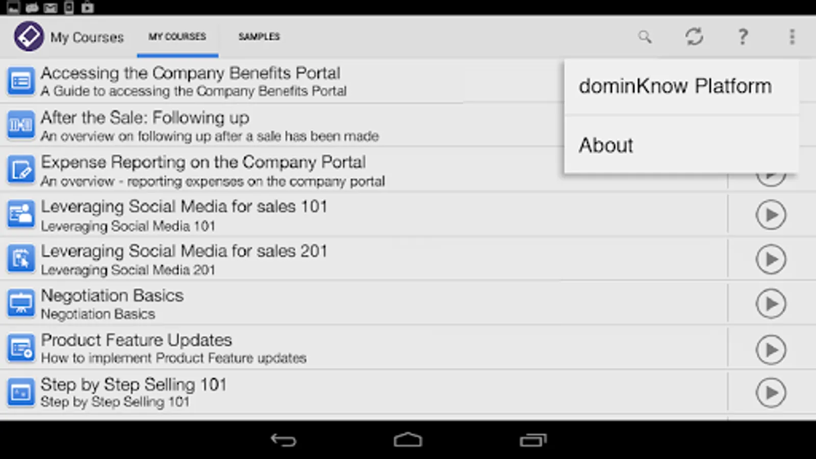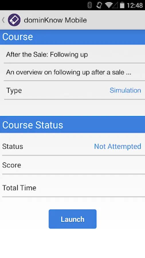 With the app you can launch SCORM and Experience API content built with the award wining dominKnow One authoring system that always produces mobile ready content. Content can be consumed both online and offline with full tracking and recording of your data to your device.