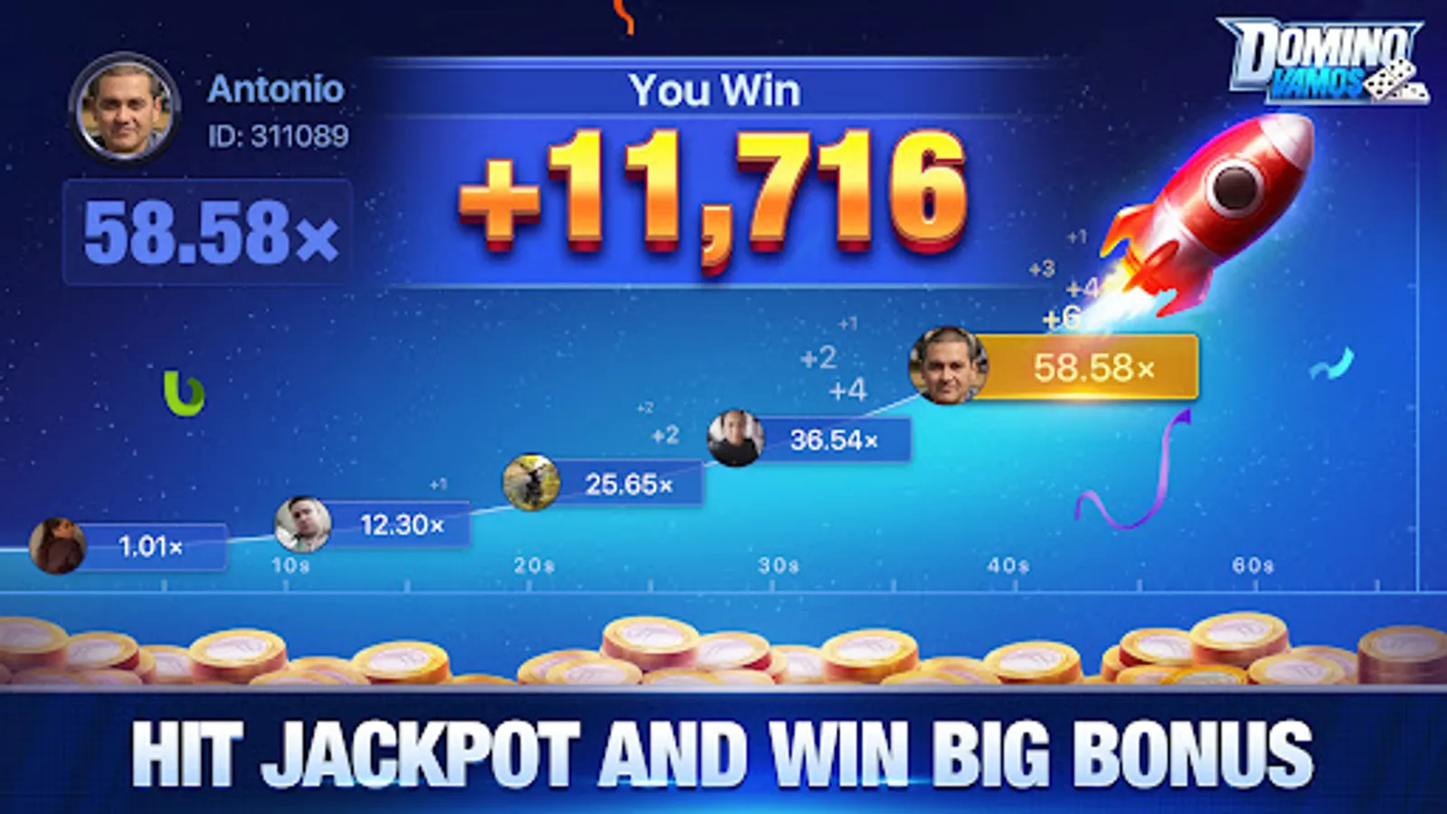 Are you a fan of Dominoes? Join Domino Vamos and enjoy the classic Dominoes gameplay! Challenge millions of players in thrilling tournaments and experience the joy of victory. You can also explore up to 10 heart-racing games including Slots, Poker, Crash, and more—where generous rewards are up for grabs! Plus, join voice rooms to team up with new friends and share your highlights live! What are you waiting for? Download to show your mastery and win big now!