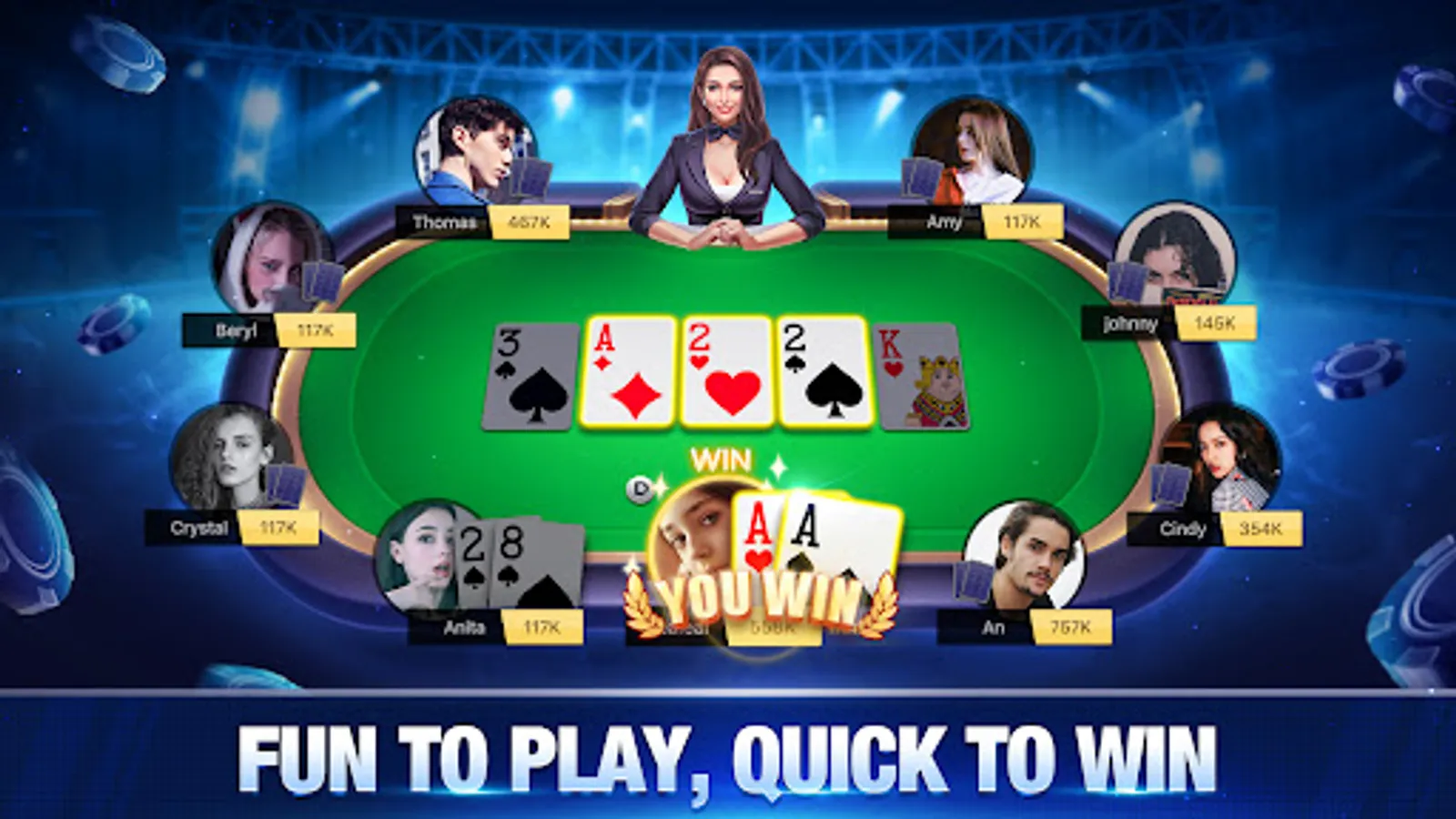 This game is meant for adult players of age 18 or older and does not provide real money gambling or opportunities to win cash or prizes. The game's virtual assets have no value in the real world. Playing or excelling in this game does not indicate future success in real money gambling.
