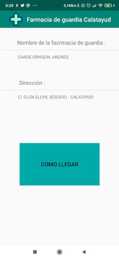Application to find the Calatayud duty pharmacy, and to be able to go through google maps.