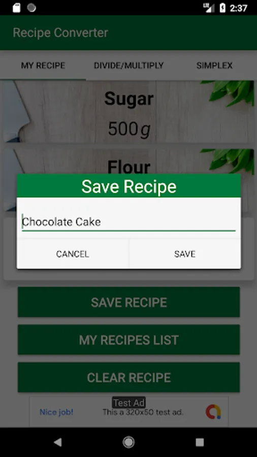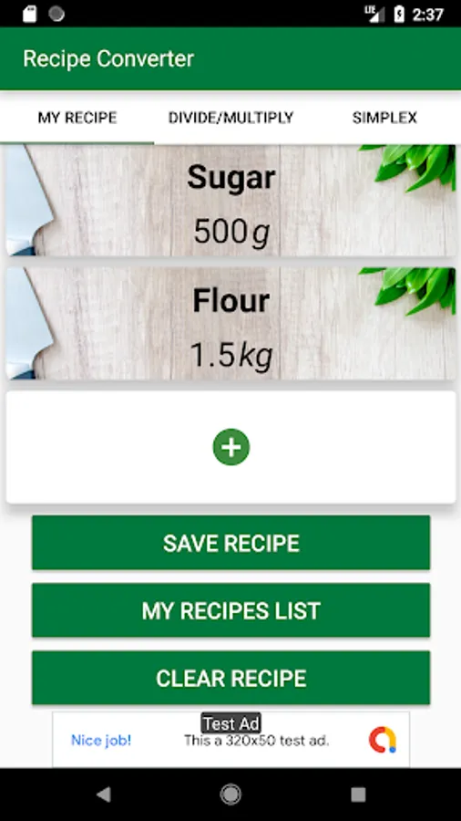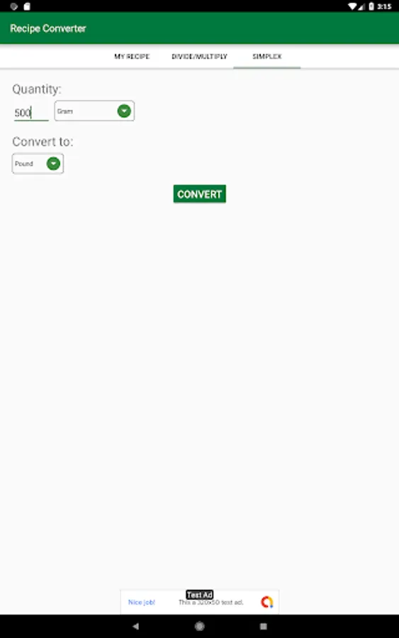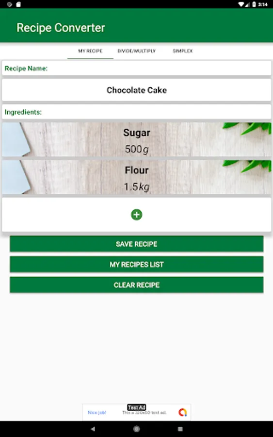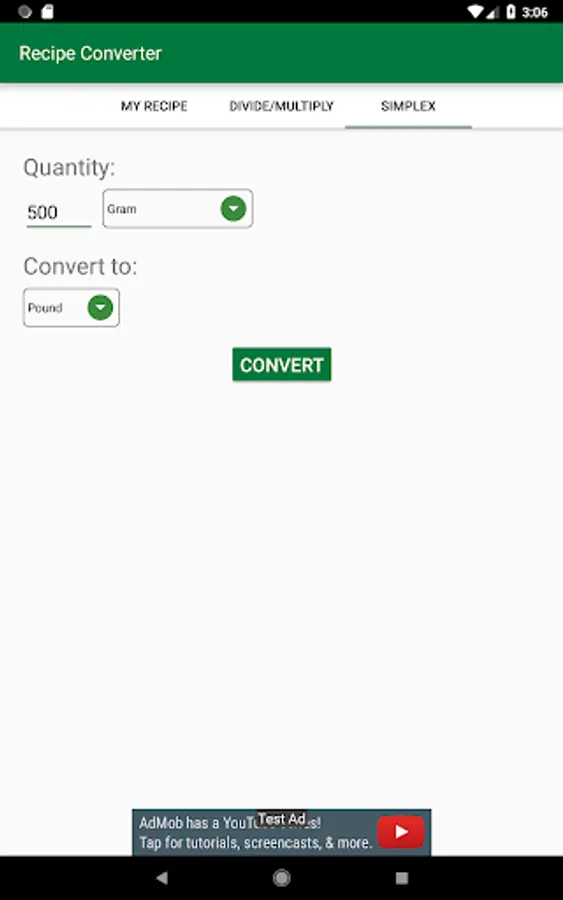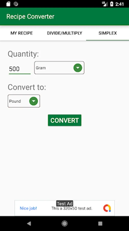 What if you just don't have the time to add a full recipe ingredients? Then in the Recipe Converter go to "Simplex" tab. This tab offer the simplest way to just convert a quantity to another unit, you don't need ingredient names, recipe names, or to save or load anything, just press the button and you will find out the result.