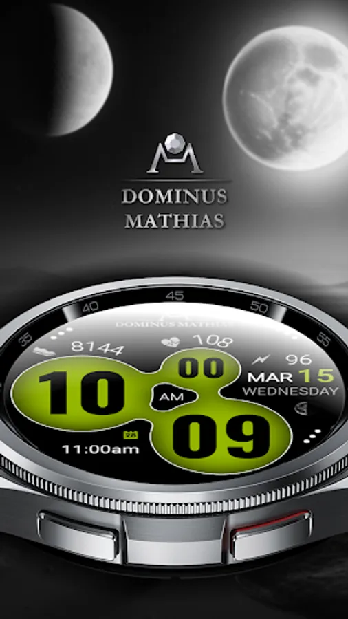 Unique, original designed watch face from Dominus Mathias for Wear OS devices. Enjoy the real power of this premium model.