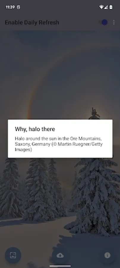 Wake up to a beautiful new wallpaper every day! Daily Wallpaper will automatically update your device wallpaper with Bing's image of the day. This minimalist, lightweight app will give your phone a refreshing new look with stunning photos from around the world.