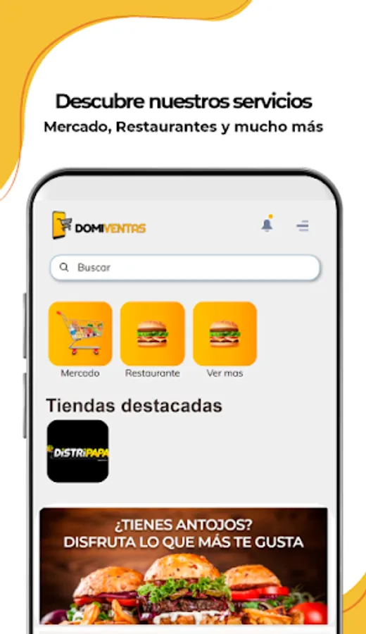 En DomiVentas no solo imaginas, lo haces realidad y con pocos pasos podrás tener eso que se te antojó, pero…. Solo imagina esa comida que pediste, calientita, buen sabor ¡mmmm, que delicia! Y no solo eso, también contamos con un mercado en el que podrás comprar otras cosas además de comida y, sin necesidad de salir de casa... Si, lo sé, parece un sueño, ¡un cuento de hadas! Pero no, no lo es, DomiVentas te ofrece un excelente servicio y soporte para tus inquietudes.