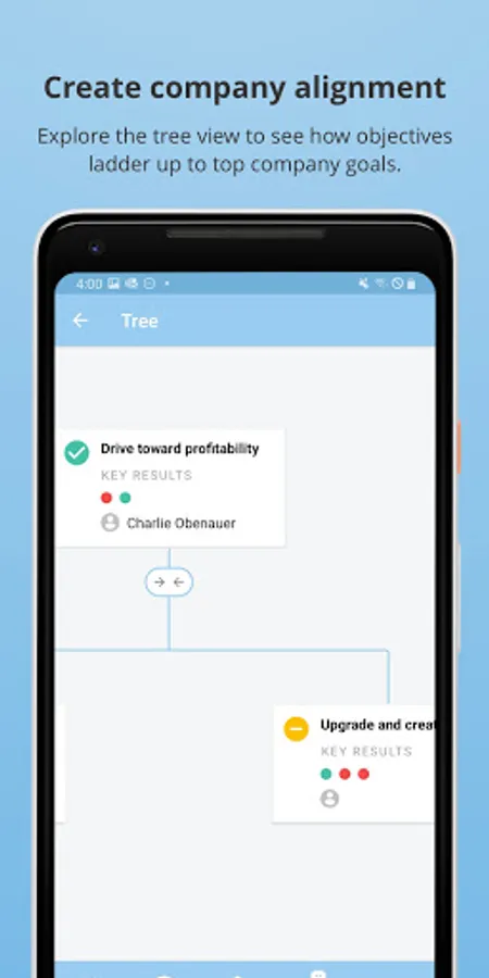 - Explore the tree view to see how objectives ladder up to top company goals.