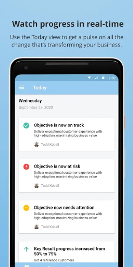 - Use the Today view to get a pulse on how everyone is doing, and where coaching or intervention is needed.