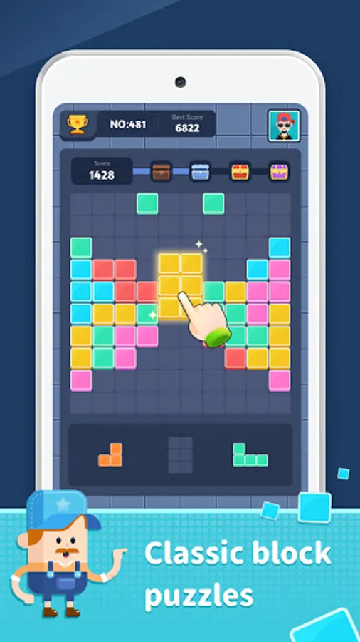 Download Block Puzzle, solve logic puzzles, get higher scores, train your brain, and enjoy a focused and relaxing time!