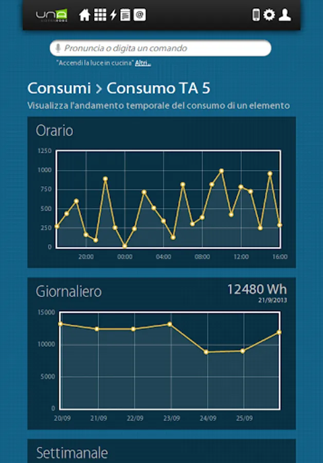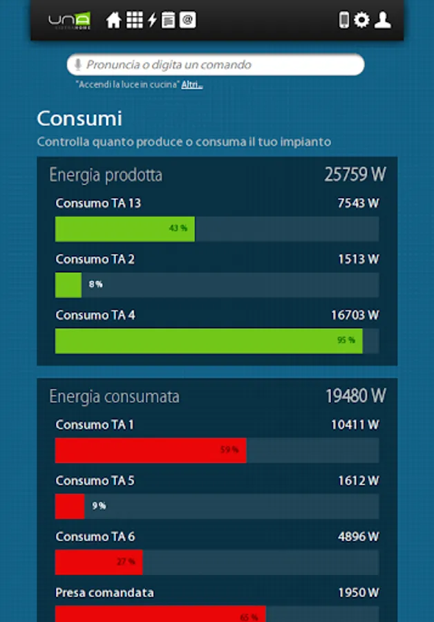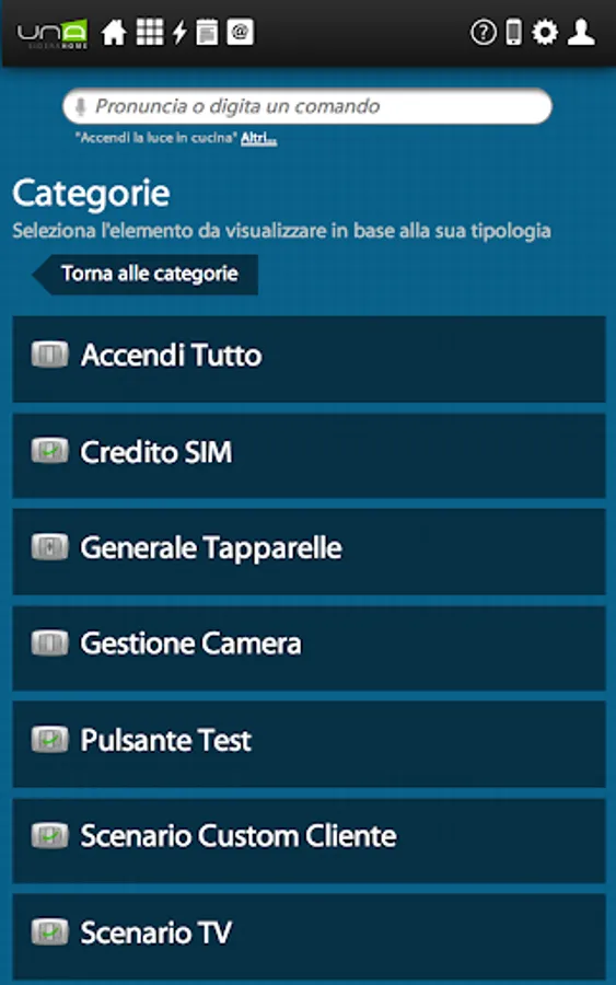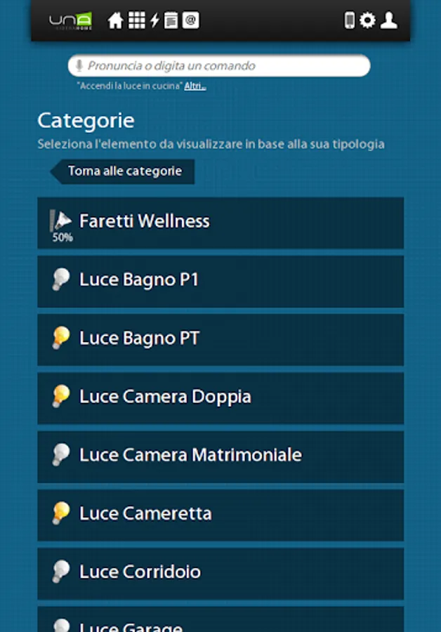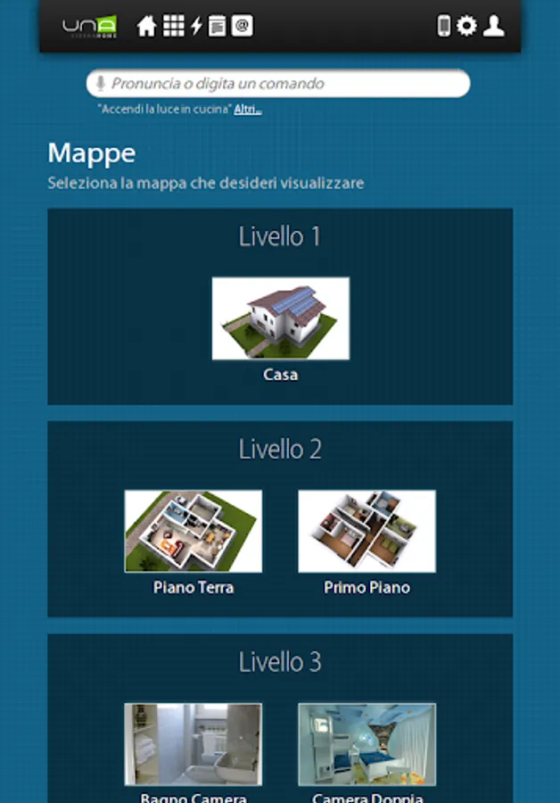 UNAMobile, the app that permits to interface your UNA domotic installation with Android devices. You will control through your phone or tablet all devices connected to UNA. In order to use the application and the control funcionalities, you need to have already pre-installed a UNA Home Automation System installation of Master- Divisione elettrica.