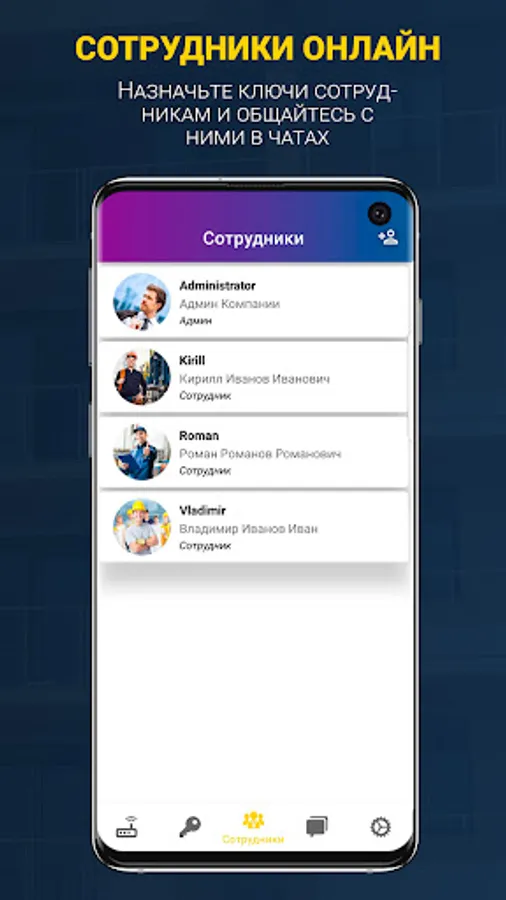 You will get full control of the system right on the smartphones of your employees. You do not have to be in the office, at the computer for the system to work. All data is displayed in real time on the smartphone screen, anywhere and anytime. The application is a self-contained control system where the following functions are available:
