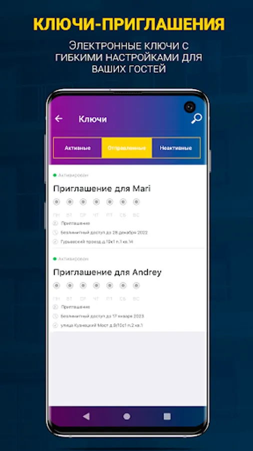 Get digital keys for your address, manage access to the entrance directly from the mobile application.