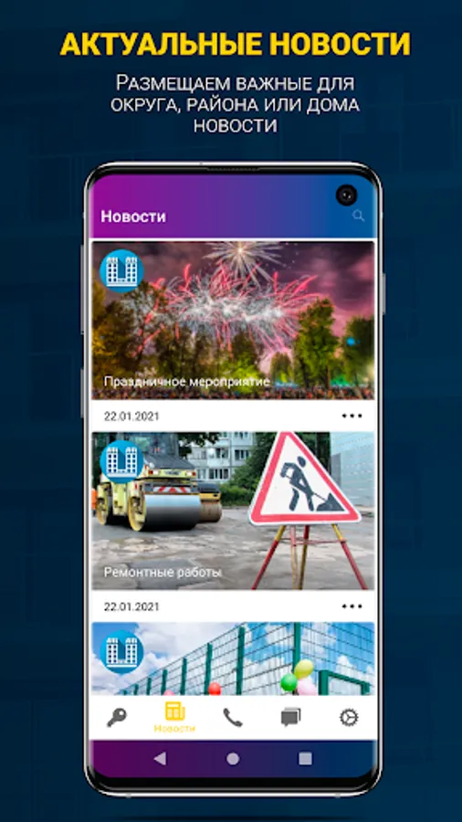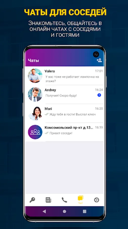 Meet and communicate with your neighbors in private and group chats, solve important issues and get important information from management companies and city services.