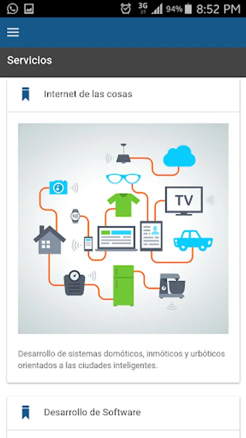Company dedicated to develop solutions Internet of things (home automation, building automation, ubótica) and software development. located in Bucaramanga, Colombia.