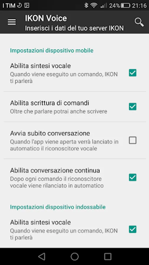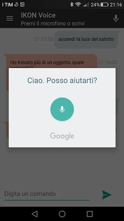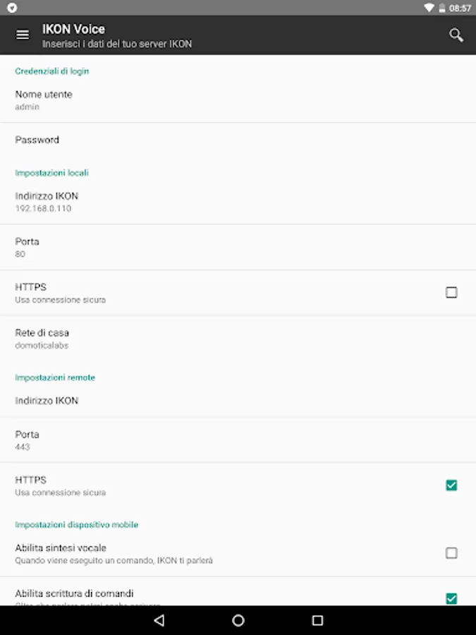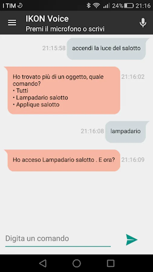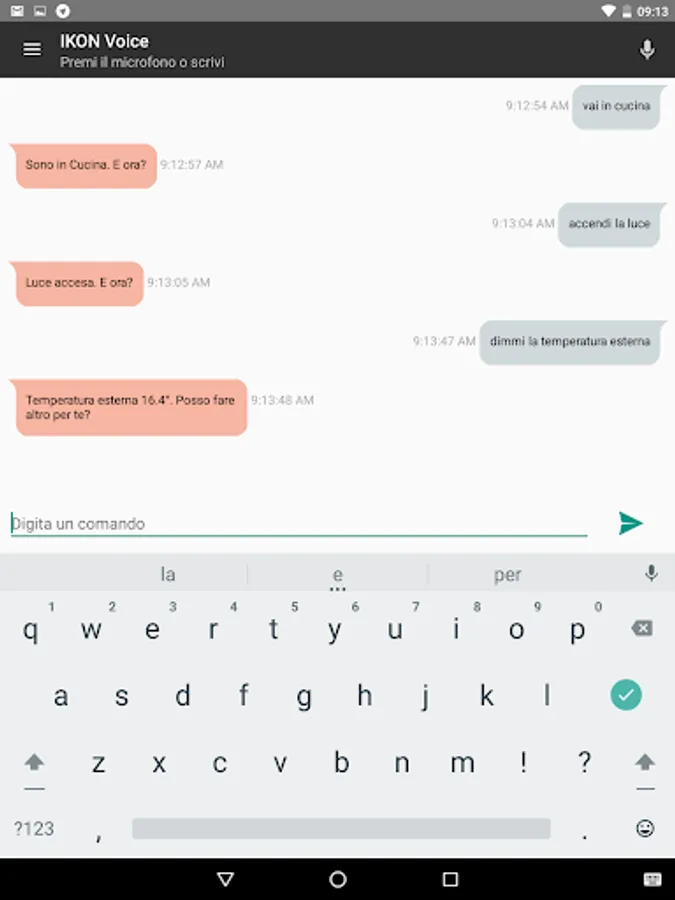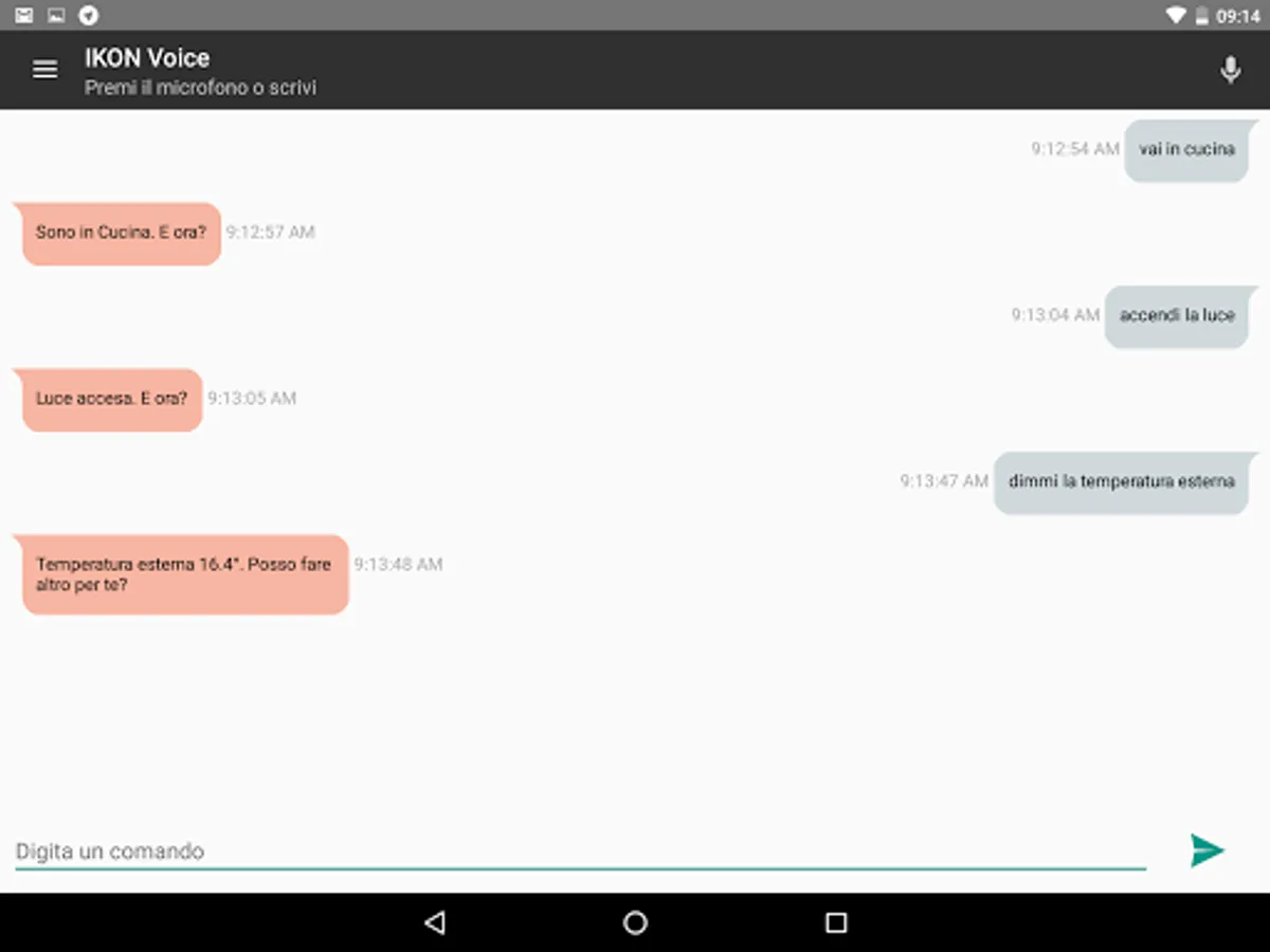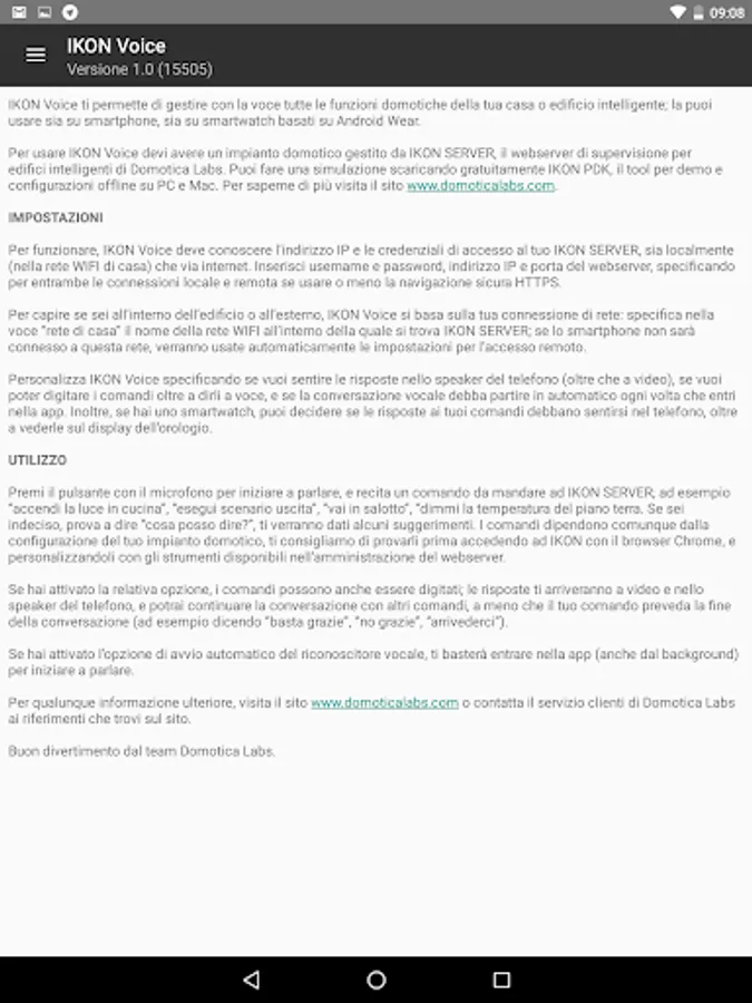 Once configured the IP address of the web server and login credentials, simply call up the app (saying "start assistant home automation" on smartwatch, by selecting the icon on the smartphone / tablet), and then issue commands, such as: