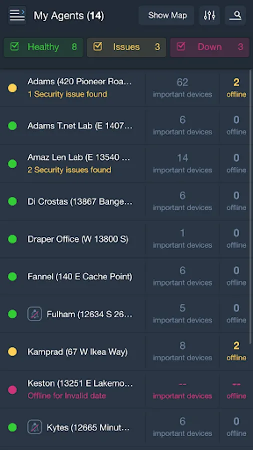• DASHBOARD: A dashboard to troubleshoot and monitor all live agents installed across various networks. Easily troubleshoot and identify issues across multiple networks.