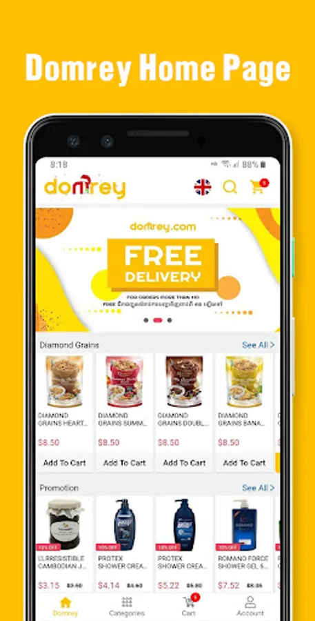 With end to end Cash On Delivery method, we bring the essentials directly to your door. Our main goal is to make the largest, greatest and biggest E-Commerce store in Cambodia. We are ready to bring you a convenient way for online shopping. Domrey, Supermarket at your fingertips.