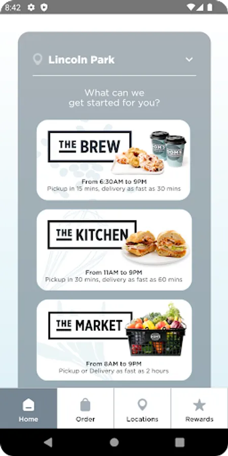 Order groceries, breakfast, lunch, dinner, and all the snacks in between for pickup at Dom’s or delivery by Dom’s.