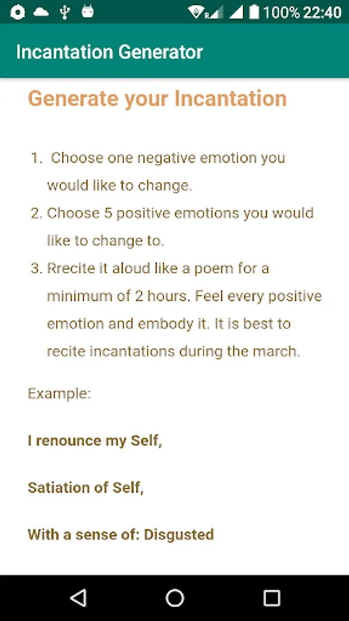 With incantations, you are changing your physiology and changing your state, leading to a different and more positive outlook and approach to each day. While affirmations sound positive, they may not carry the full weight of emotion and transformative power if the person saying them aloud does not actually believe in the thoughts and meaning behind them. Incantations are meant to reverberate throughout the body and mind and alter one’s sense of self.