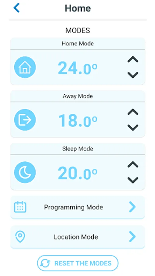 - You can choose one of the 6 different modes which suit your situation and control your home temperature. (Home Mode-Sleep Mode-Outside Mode-Program Mode-Location Mode-Manual Mode)