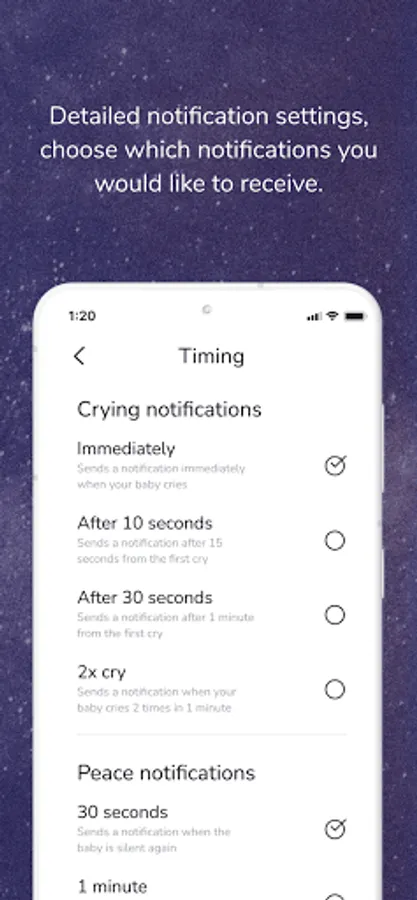 - Set the sensitivity yourself so that you only receive a notification when your baby is awake.