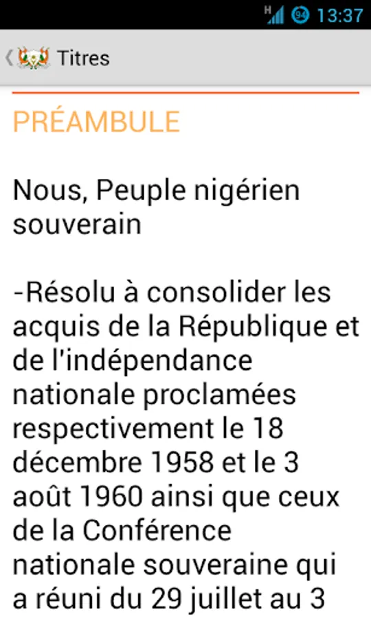 The Constitution implementation Du Niger aims to address the lack of knowledge of the laws of the nation of the citizens. It helps them to understand their rights and how the country is governed. The project objective is to enable Nigerians to have a working knowledge of the constitution by providing content easily accessible to mobile phones.