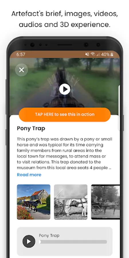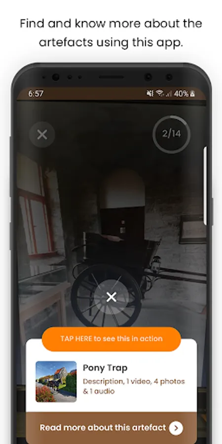 A camera is integrated in the app to let you scan the artefacts and the app will tell you what it is along with detailed description, images, videos and audios. Some of the artefacts have 3D models which will show you the artefacts in action.