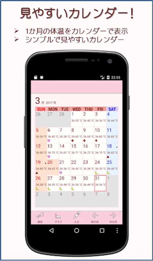 Calendar display, line graph, is a simple screen configuration of the input screen.