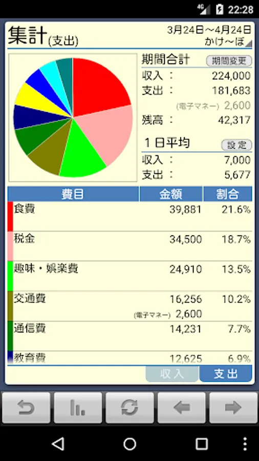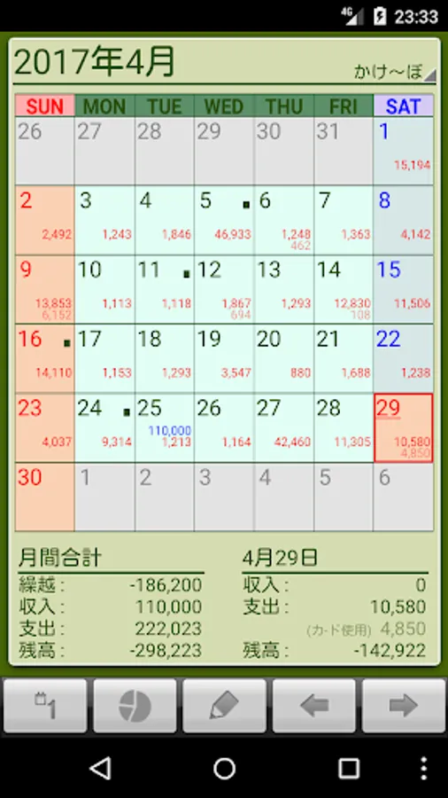 "Kake-bo" is a household account book application that can be easily entered and analyzed in a graph.