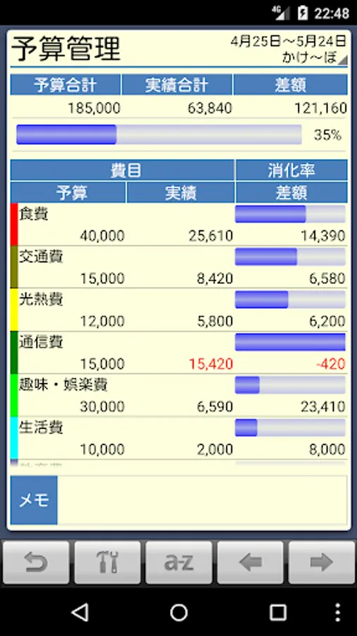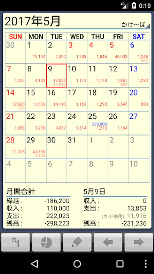 It is a household account book that not only allows you to enter the daily income and expenditure, but also allows you to easily analyze the income and expenditure by displaying daily, monthly, and pie charts.