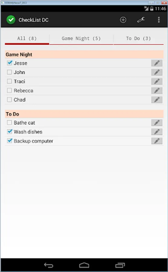 Let's you create checklists, organized into sections.