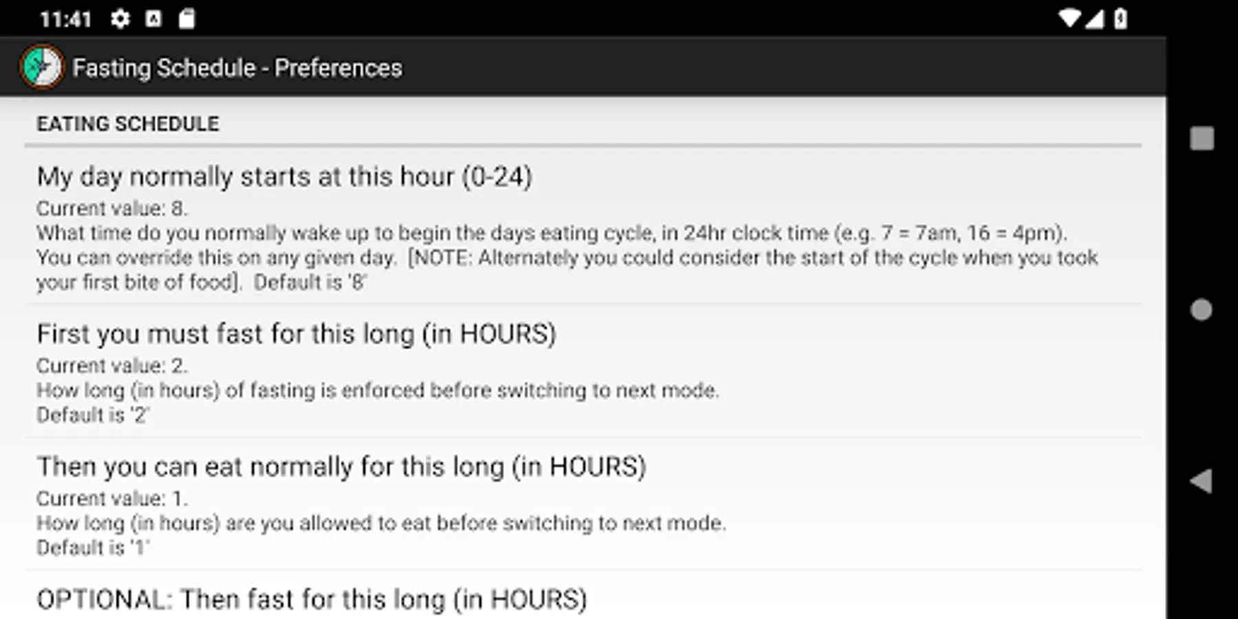 Fasting Schedule is a minimalist dieting application for facilitating reduced-caloric intake, by allowing you to set up a daily time schedule for when you can eat vs when you should be fasting. It should run nicely on any screen size.