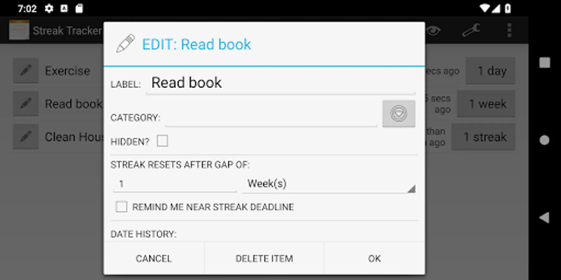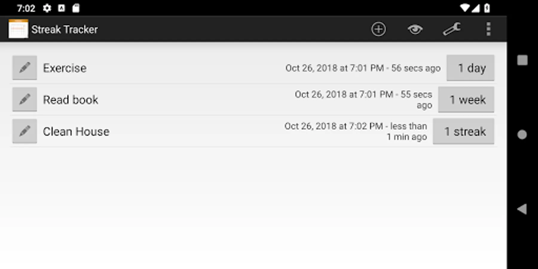 "Streak Tracker" is a simple app that helps you keep track of streaks of continuous activities and the last time you performed some activity.
