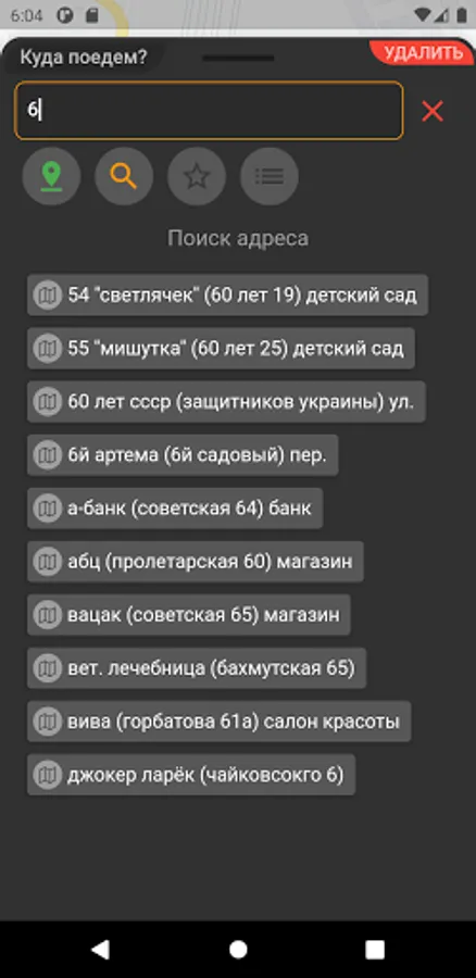 - Convenient address search. For a quick search, you just need to enter two or three letters of the street name, put a space and enter the house number. The program will offer you suitable options;