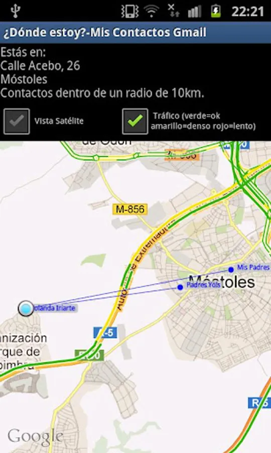 4. It displays your Gmail contacts (those ones who are inside a 10km radius from your current location) on the map.