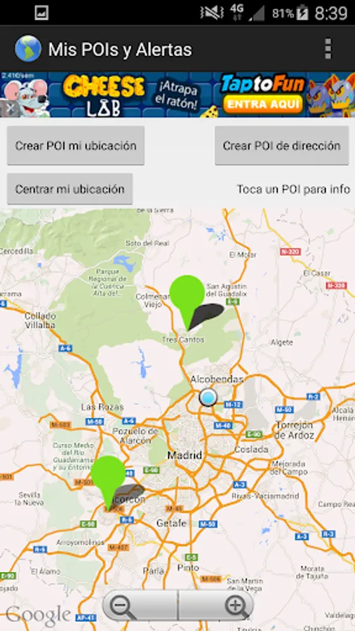 6. Posibility to create your own POIs (from your location or out of any address) that are saved on a database. You can backup & restore this database whenever you wish. This POIs will be displayed on a map and if you tap of them the info regarding each POI will be shown.