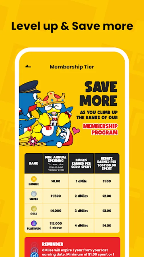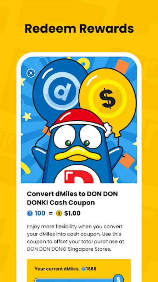 ・Present this app at the cashier when making payment or enter your membership ID at checkout page to earn and accumulate dMiles which will entitle you to redeem gifts