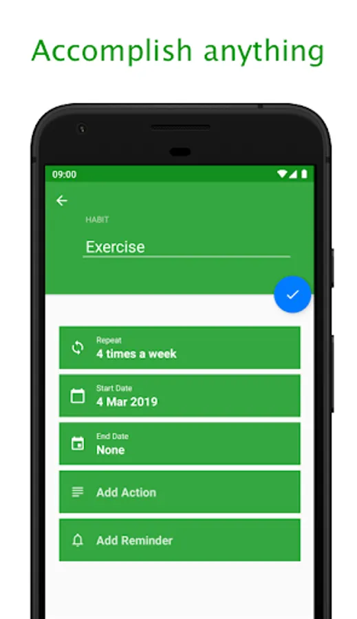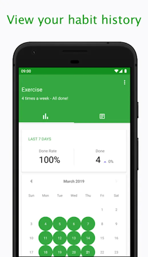 Track any habits that you want. From waking up earlier, meditation, to exercising and reading more. Set how often the habit should be repeated. Pick from every day, certain days of the week or a number of times per week. Habits can be highly customizable.