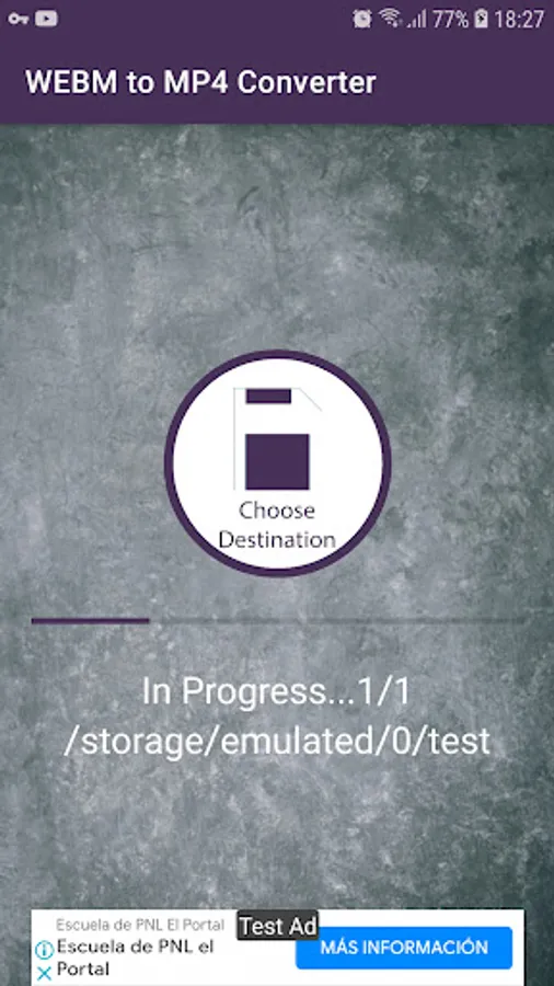 After choosing destination folder, converting progress bar is shown. When it is done, text 'Completed' is shown.