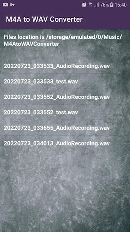 Path where files are stored is /Music/M4AtoWAVConverter.