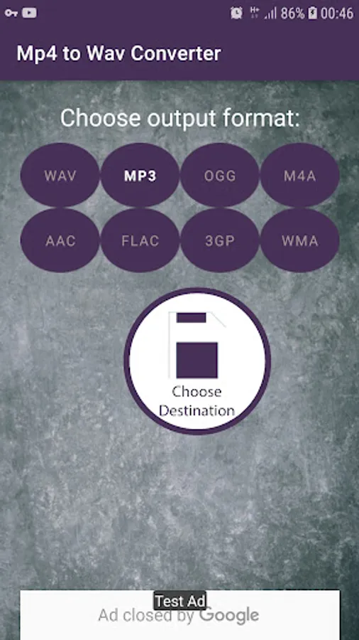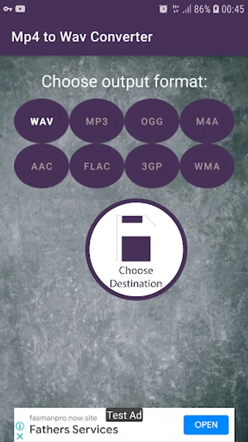 Interface is simple. On first page user chooses input file/files. After selection user is redirected to the second page where by default 'wav' format is selected but you can change selection to any of above mentioned output formats.