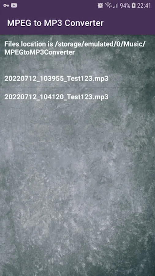 Path where files are stored is /Music/MPEGtoMP3Converter.