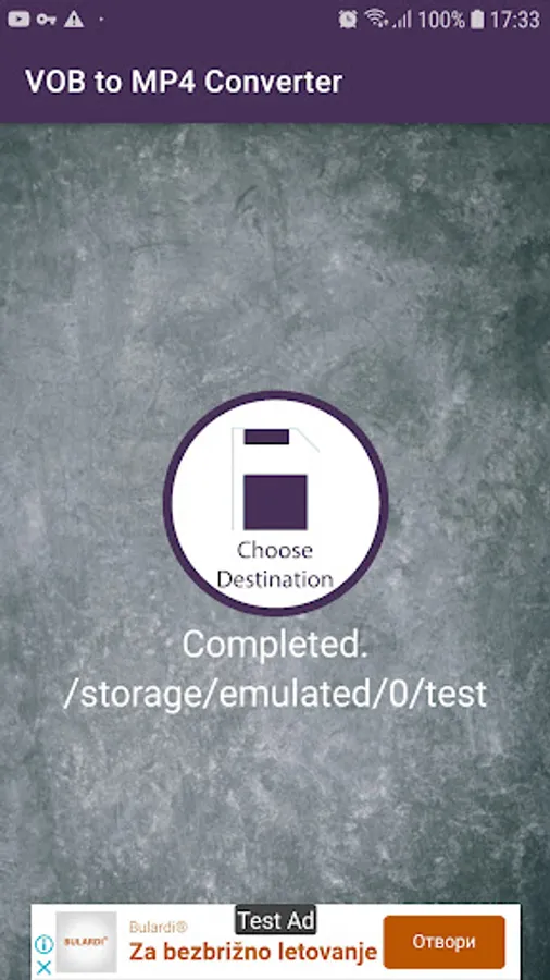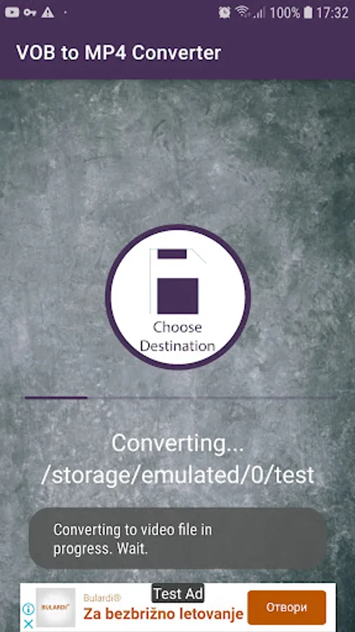 After choosing destination folder, converting progress bar is shown. When it is done, text 'Completed' is shown.