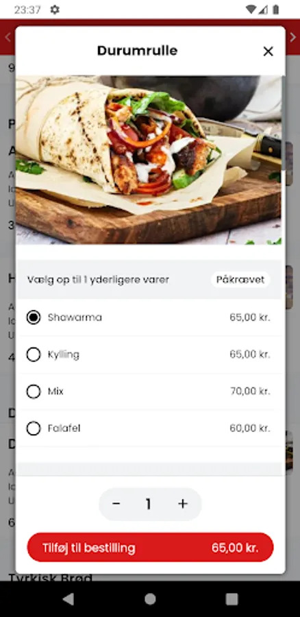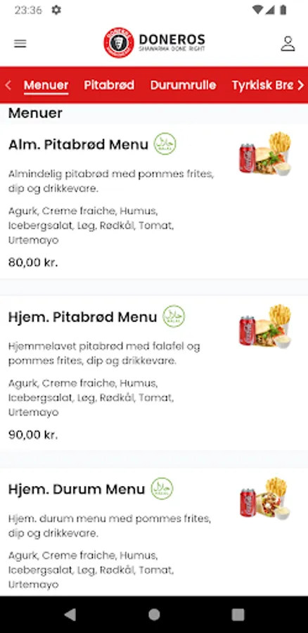 Here you will find: Pita bread, Durum roll, Sandwich, Bowl, Dishes, Kids menu, Miscellaneous, Dips.