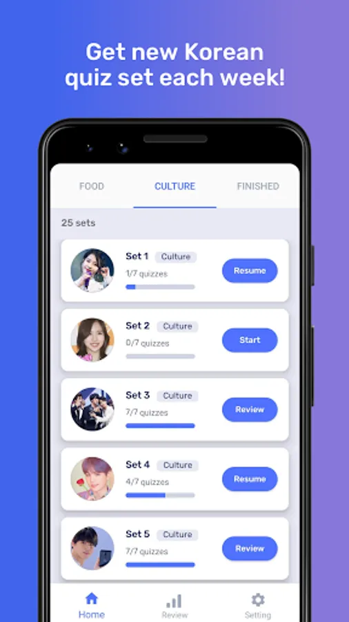 • Each week a new quiz set consisting of 7 quizzes will be uploaded to the app.(You need to make 1 time purchase to access all new quizzes)