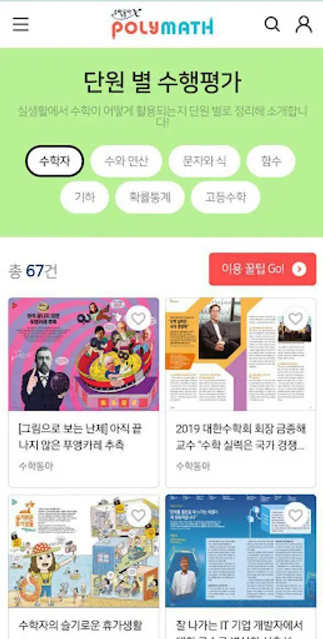 "Mathematics Dong-A Polymass" is an application of mathematics culture magazine Mathematics Dong-a published by Dong-A Science. Enjoy the various mathematics experiences that Mathematics Dong provides in the Mathematics Donga Polymass application.