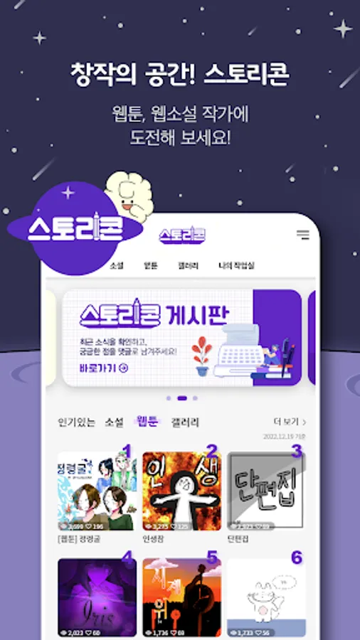 -Story Con: Novel (web novel), webtoon, gallery (picture)