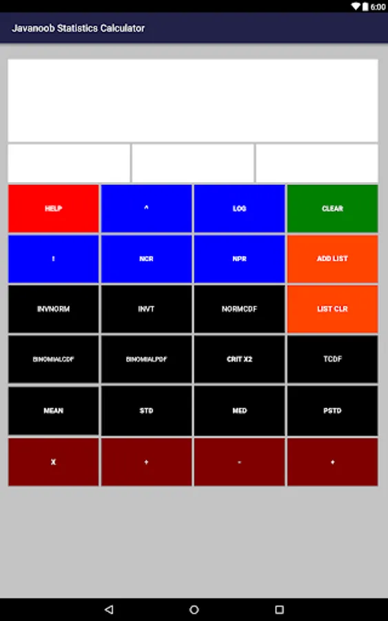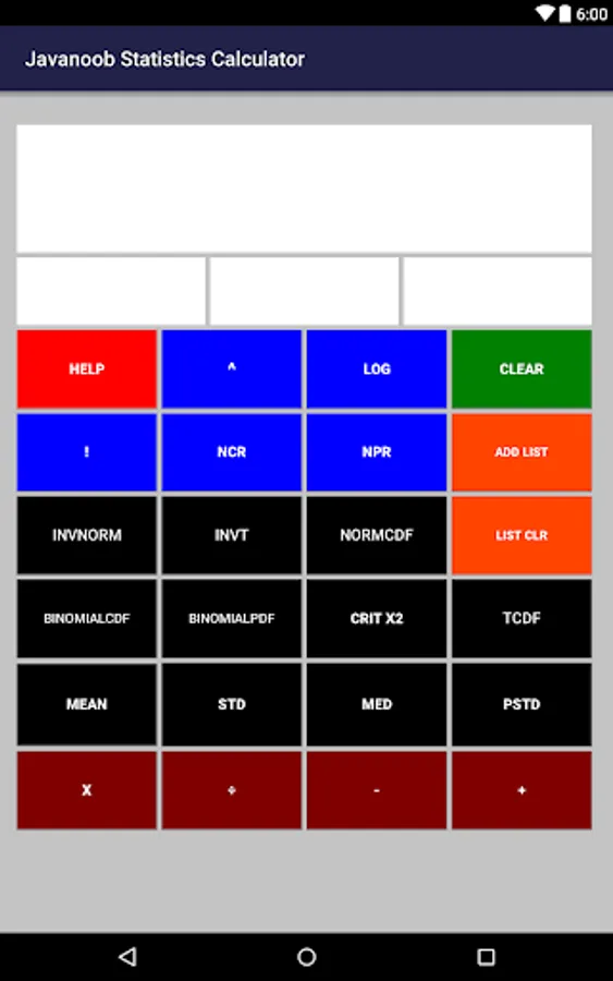 Statistics calculator providing basic math and statistical functions such as normalcdf, tcdf, binomial distribution, mean, median, and standard deviation of user inputted lists. Detailed instructions make this calculator very easy to use.