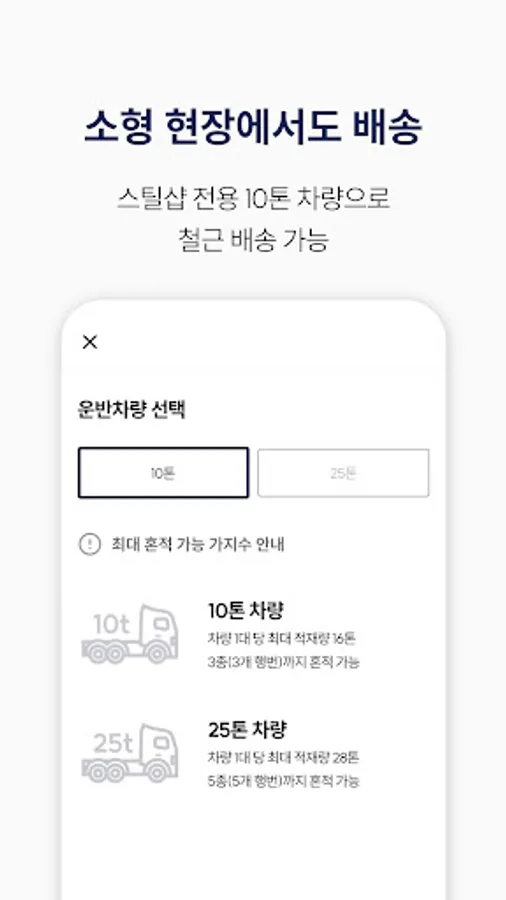 Delivery Vehicle: A 25-ton vehicle is standard, but in the case of a small site, a 10-ton vehicle exclusively for steel shop can be used for delivery