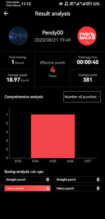 FightBacKPro is a mobile application software for boxing data collection and analysis developed by Shenzhen Onecoder Technology Co., Ltd. It cooperates with intelligent boxing hardware products to record your boxing data in real time. Through professional and detailed data analysis, you can learn more about boxing. Body state, enjoy a new smart boxing experience.