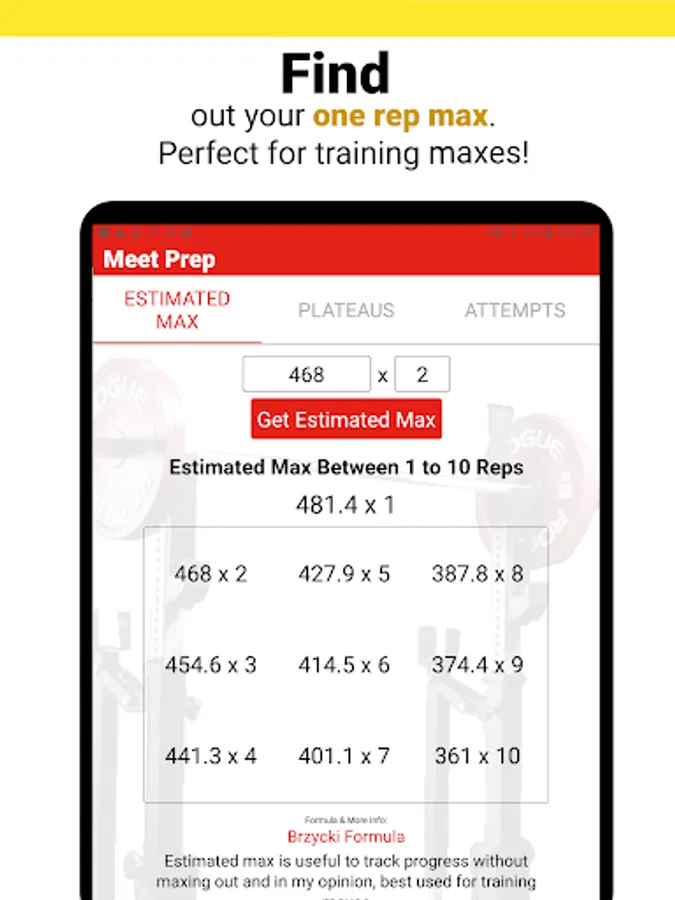 - 1 to 10 rep max calculator -- perfect for training maxes